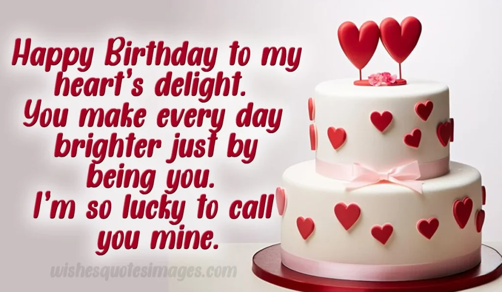 Romance is all about gentle words, deep admiration, and heartfelt affection. These romantic lines appreciate her inner and outer beauty, making these Heart Touching Birthday Wishes for Wife even more special.