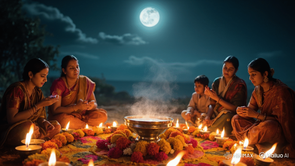 Traditional Kojagiri Purnima rituals celebrate devotion, faith, and the timeless message of peace and prosperity passed through generations.